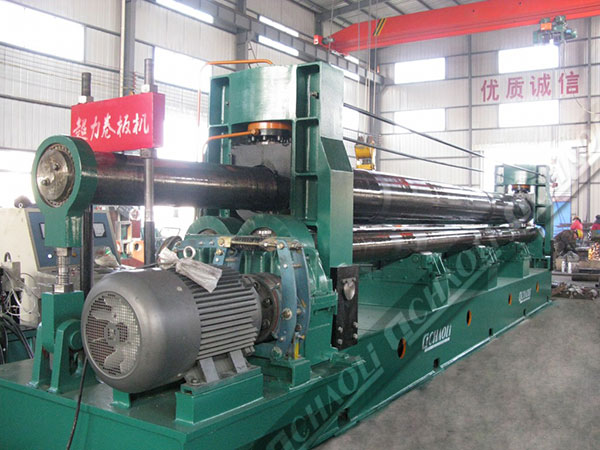 掛車用卷板機增加托輥及上輥撓曲補償可使筒件取得較好的直線度。可增加外托料架及內升料架使操作更便利,更少人工。可配合前后道工序作生產線優化使用。